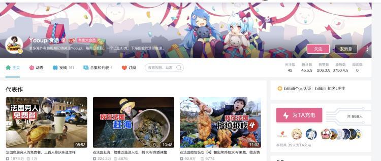 尤比(Yooupi)在bilibili上分享自己的留学生活。/bilibili@Yooupi食途